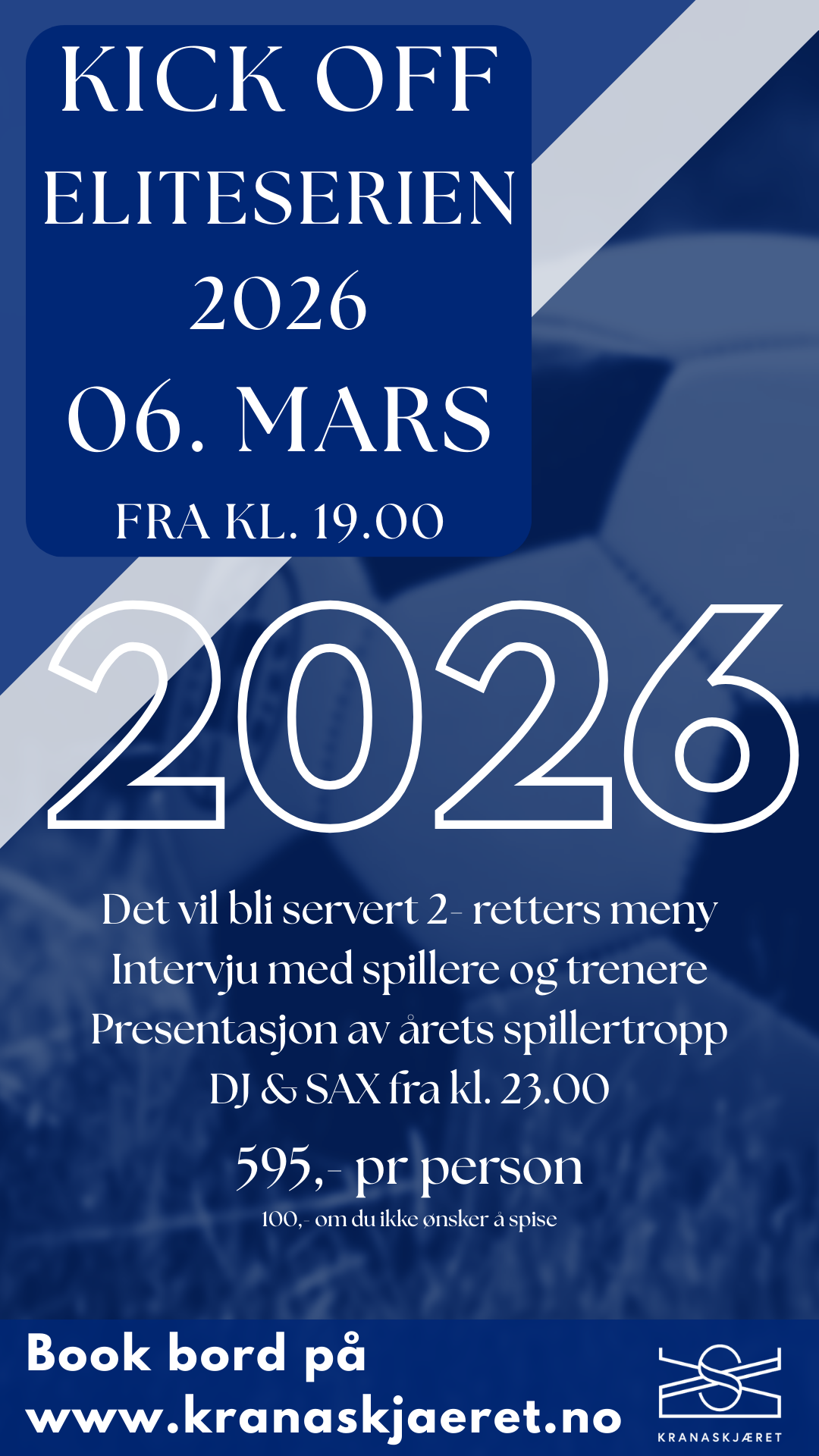 Fredag 6. mars arrangerer Kranaskjæret supporter-KICK OFF for eliteseriesesongen 2026!