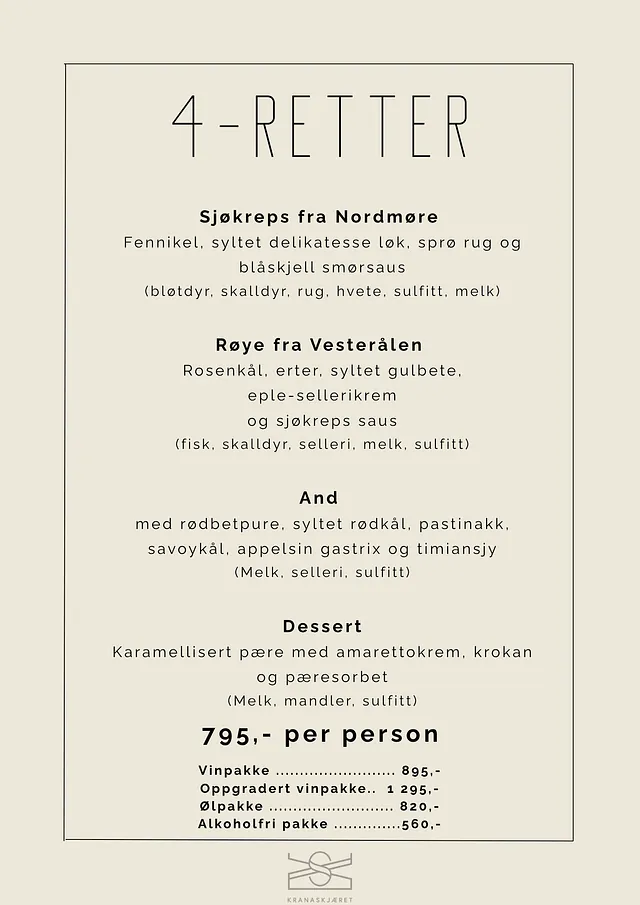 Da har vi endret vår 4- retter meny. Denne endrer vi etter tilgangen på sesongens råvarer.